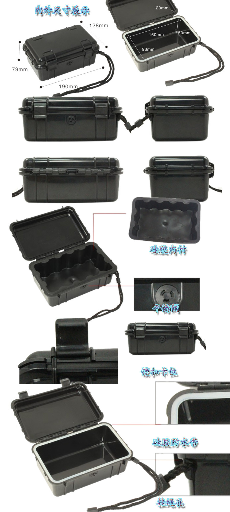 簡要說明:廣泛用于傳媒、公安、消防、軍隊、航空、戶外攝影、野外考察、科學(xué)探測等眾多領(lǐng)域的高端儀器、儀表。具有高強度、高抗壓沖擊、防潮、絕對密封、防塵、防水等特點。產(chǎn)品材質(zhì):ABS原料,箱體采用高抗沖擊的高分子聚合材料一體注塑成型,密封采用扁型彈性發(fā)泡密封橡膠條,確保防水氣密,所有較軸均采用不銹鋼材質(zhì)。